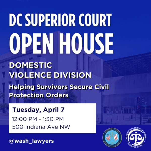 This event is hosted by DC Superior Court and Washington Council of Lawyers, and co-sponsored by Volunteer Legal Advocates.